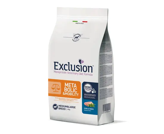 אקסלוז'ן מטבוליק ומוביליטי מיועד לכלבים בוגרים בינוניים וגדולים הסובלים מבעיות מפרקים, תנועה או אוסטאופורוזיס. המזון תומך בשמירה על משקל גוף תקין וכולל חומרים המזינים את המפרקים, כגון חומצות שומן אומגה 3 ו-EPA. הסיבים התזונתיים במזון מסייעים למטבוליזם ולעיכול קל, ומונעים השמנה ועלייה לא רצויה במשקל.