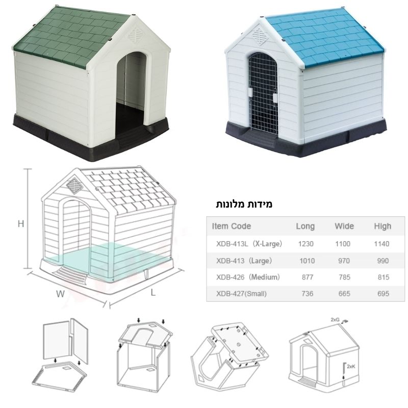 עשויה מפלסטיק קשיח באיכות גבוהה, מלונה זו עמידה בכל תנאי מזג האוויר — גשם, שמש, לחות ורוחות. החומר לא סופג ריחות או כתמים, כך שהניקוי שלה מהיר ופשוט, והיא נועדה להחזיק מעמד לאורך שנים.