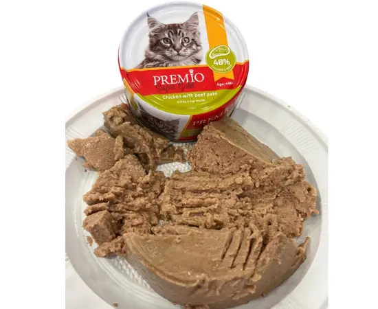 שימור פרמיו מזון מלא עם עוף ובקר בפטה לחתולים – 170 גרם של בריאות וטעימות