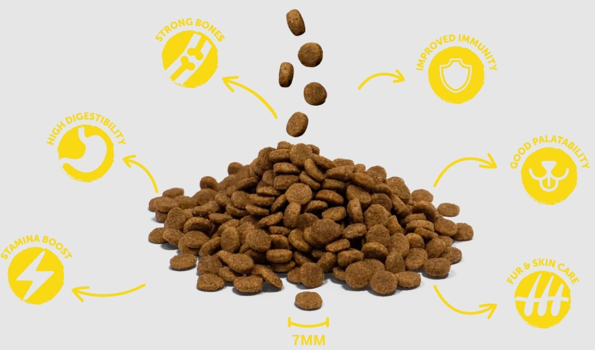 • רכיבים איכותיים: עשוי מעוף טרי שאין לו תחליפים, מספק חלבון איכותי חשוב לצמיחה ולתחזוקה.
