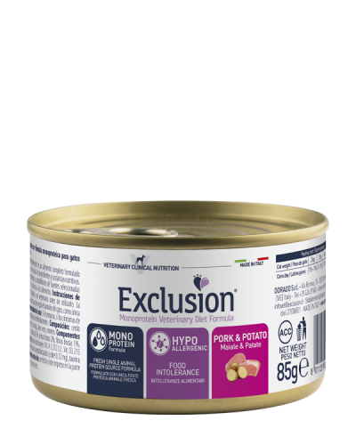 אקסלוז'ן שימור רפואי לחתולים היפואלרגני חזיר ותפוחי אדמה 85 גרם