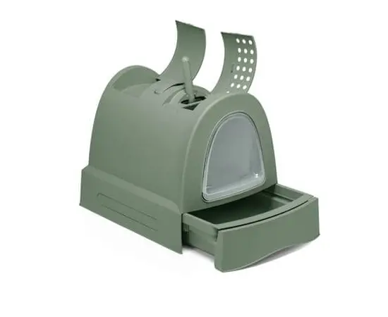 * ארגז החול של ארגז החתולים המתאים להנחת חול כולל מגירה, ניתן למלא אותה ללא צורך בפירוק ארגז החתולים.