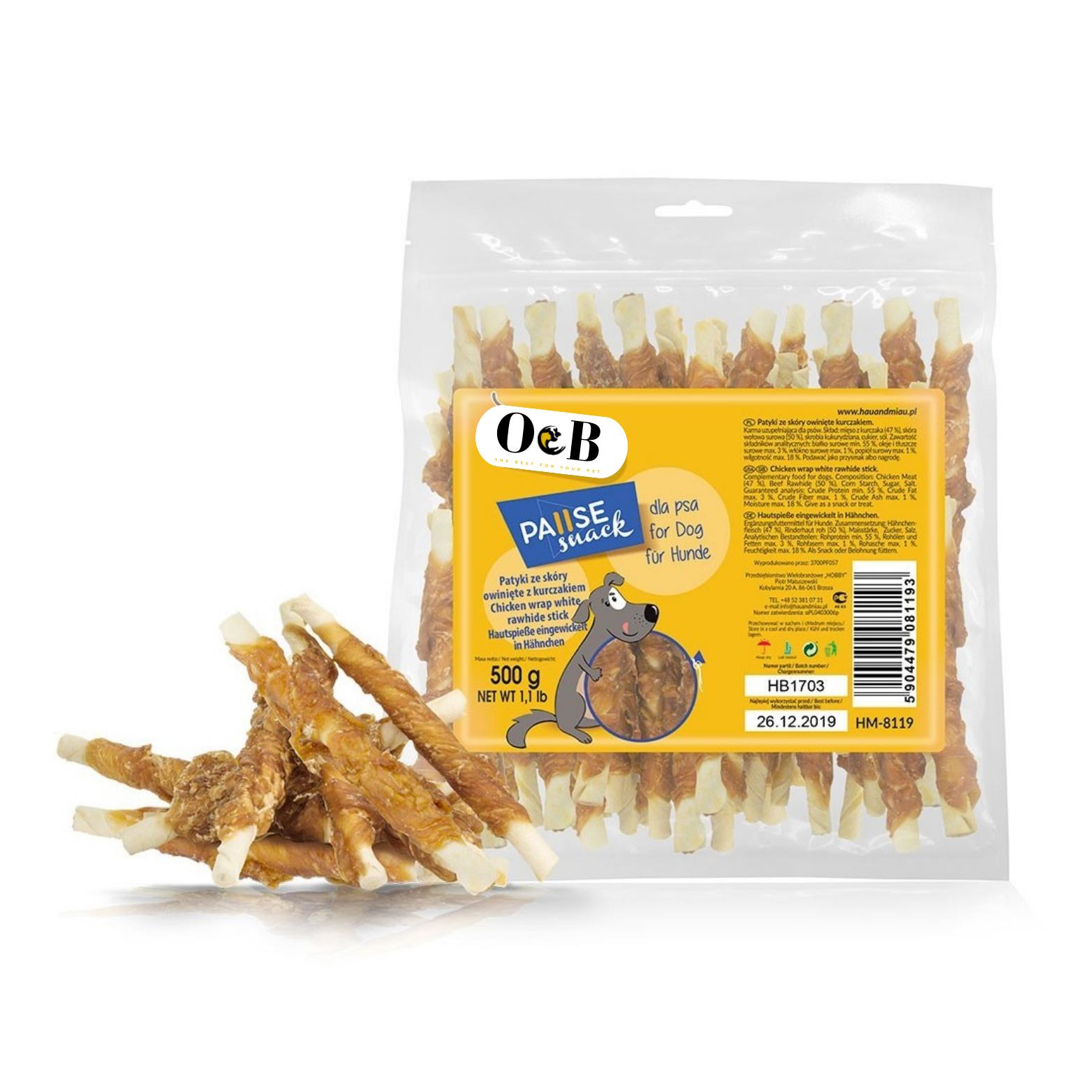 O&B חטיף מקלות עור עוף 500 גרם לכלבים - חבילה חסכונית