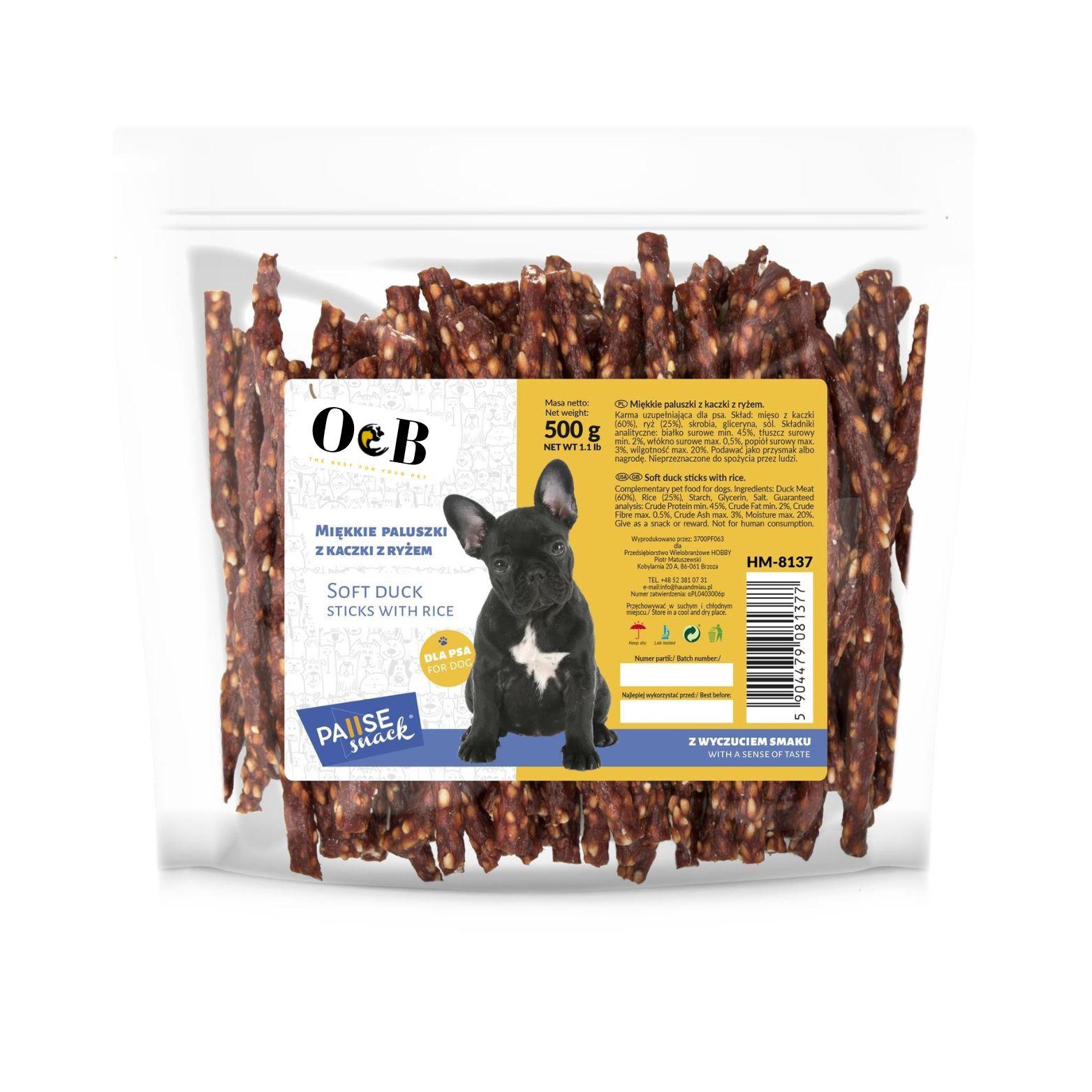 O&B חטיף ברווז רך עם אורז 500 לכלבים - אריזת חיסכון