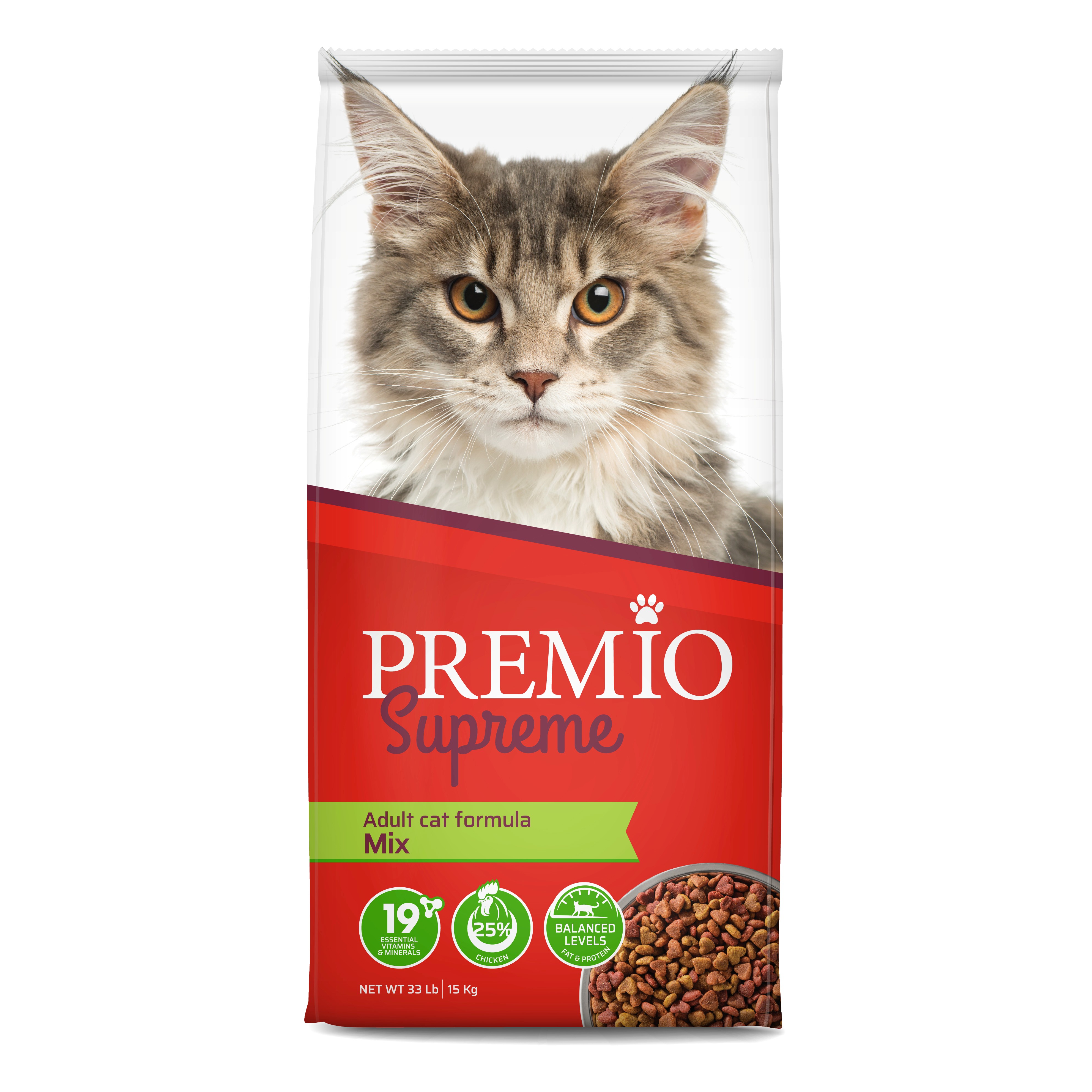 בחר בפרמיו חתול סופרים בוגר מיקס 15 ק"ג עם חטיף כריות ותן לחתול שלך את התזונה הטובה ביותר. הוועד בין באיכות גבוהה ובנוחות, ותהנה מטעמים שהוא יאהב!