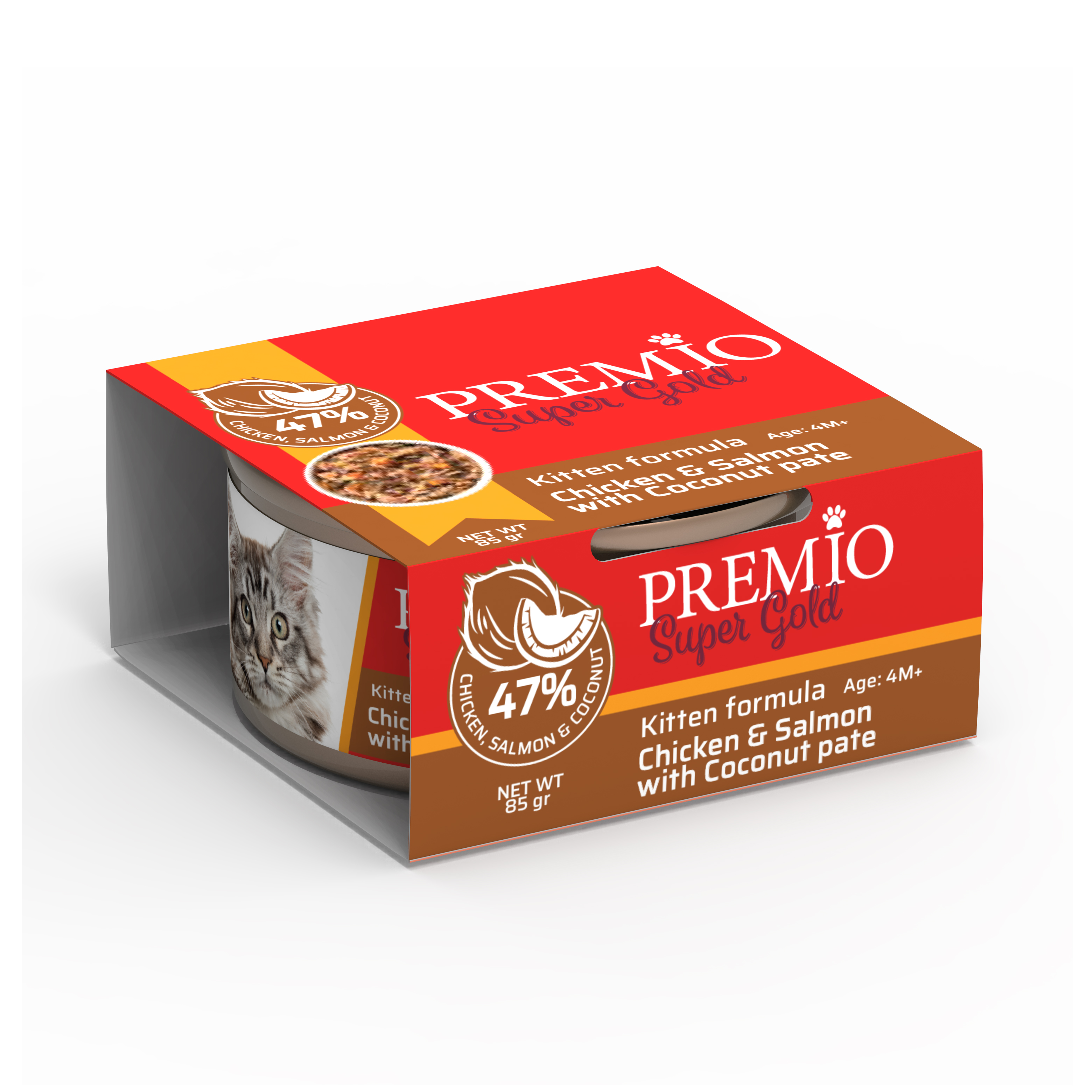 Консервы Premium Kitten Паштет из курицы и лосося с кокосом 85 грамм для влажного корма для котов