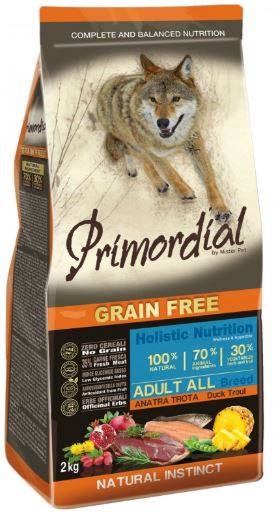 פרימורדיאל דג פורל וברווז 12 ק"ג - מזון לכלבים ללא דגנים